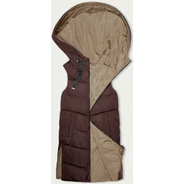 Hnědo-béžová dlouhá dámská oboustranná vesta (B8248-14)