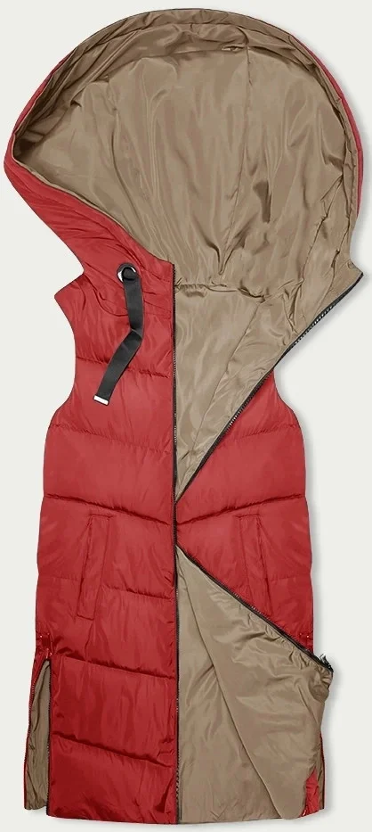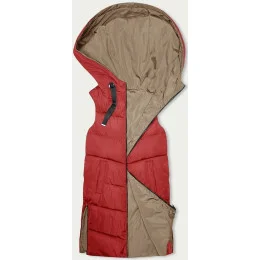 Červeno-béžová dlouhá dámská oboustranná vesta (B8248-4)