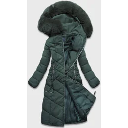 Zelená dlouhá klasická zimní dámská bunda (B8075-10)