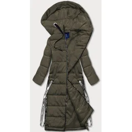 Dlouhá dámská péřová bunda v khaki barvě (AG3-3038)
