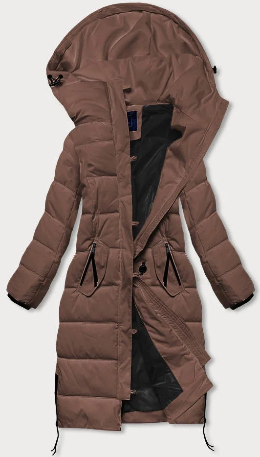 Hnědá dlouhá dámská zimní bunda (AG8-8013)
