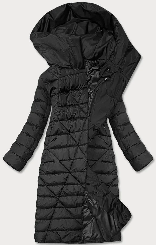 Černá dlouhá dámská zimní bunda s kapucí (my043)
