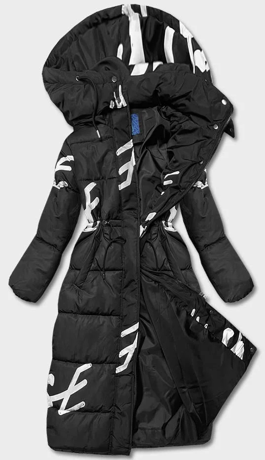 Černo-bílá dlouhá dámská zimní bunda s nápisy (AG3-3028)