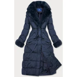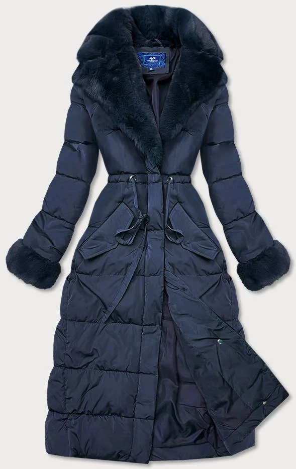 Tmavě modrá dlouhá zimní bunda s kožešinovým límcem (j9-071)