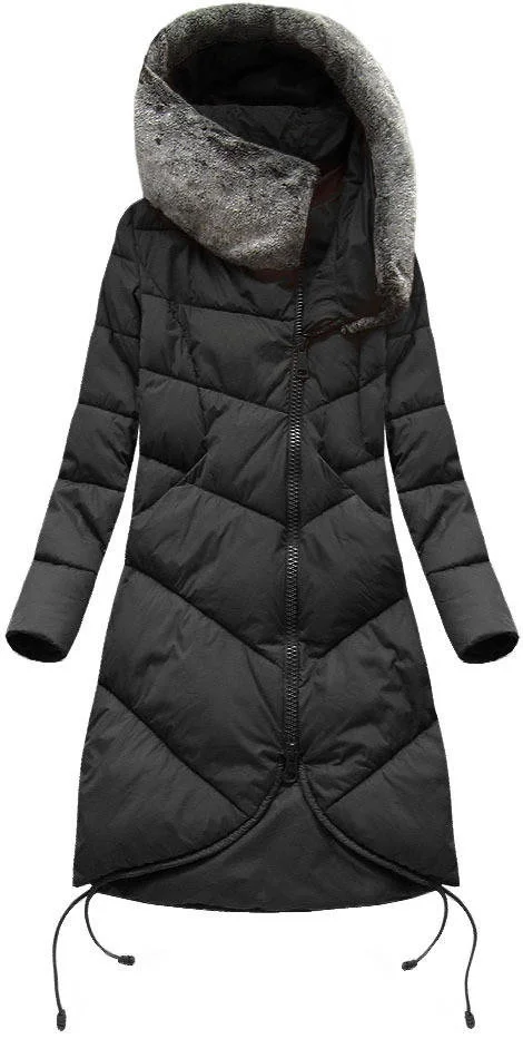 Černá dlouhá zimní bunda s kapucí (7755BIG)