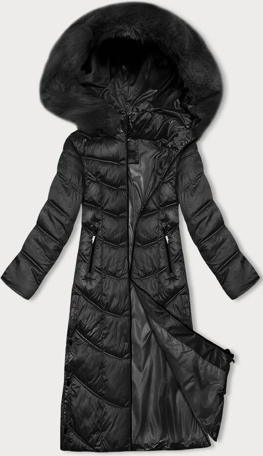 Černá dlouhá dámská zimní bunda s kapucí S'west (B8198-1)