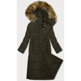 Dlouhá zimní bunda v khaki barvě s kapucí (V726)