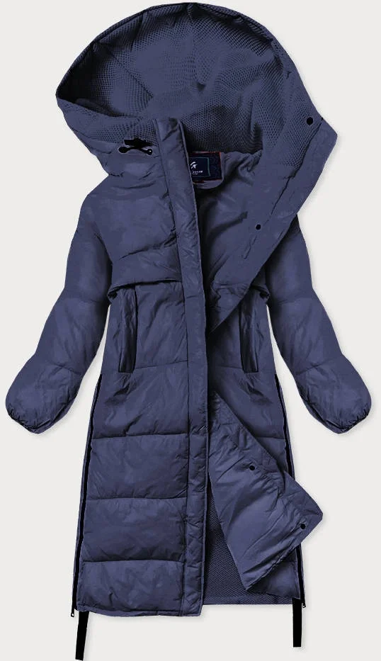 Tmavě modrá dlouhá zimní bunda z různých spojených materiálů (jin-210)