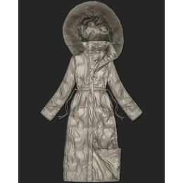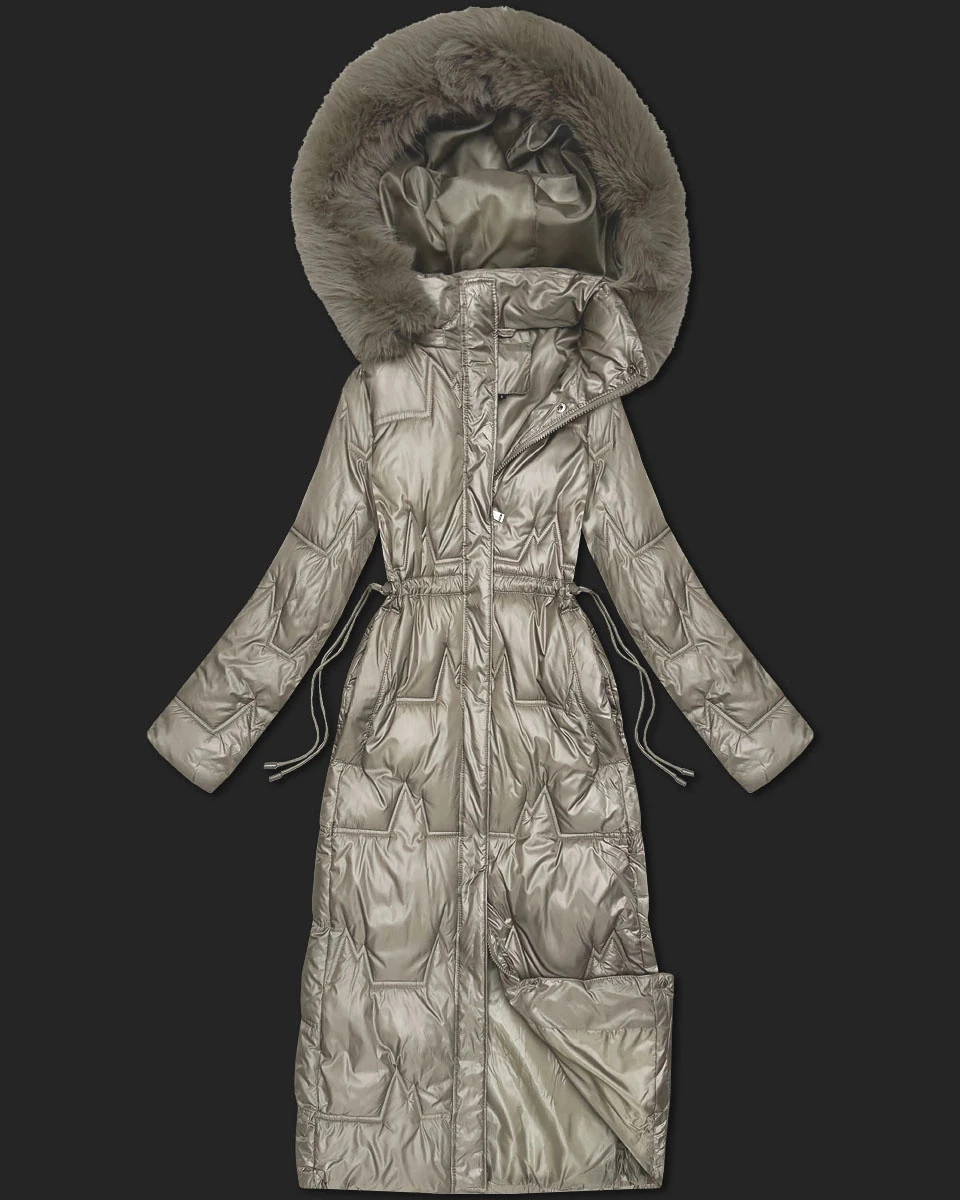Dlouhá béžová dámská prošívaná zimní bunda (T2-2221#-62)