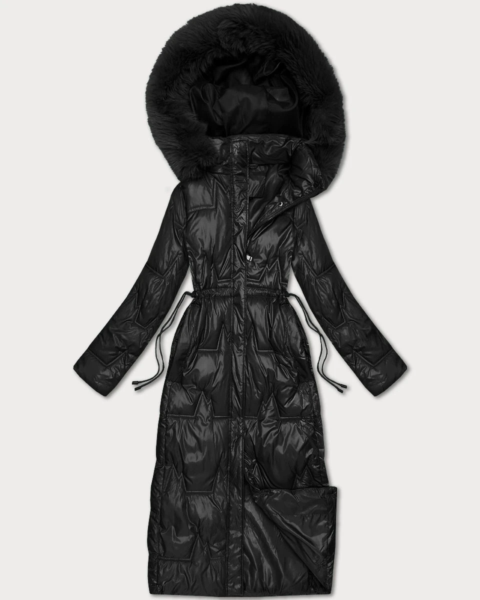 Černá dlouhá dámská prošívaná zimní bunda (T2-2221#-1)