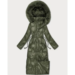 Dlouhá dámská prošívaná zimní bunda v barvě khaki (T2-2221#-22)