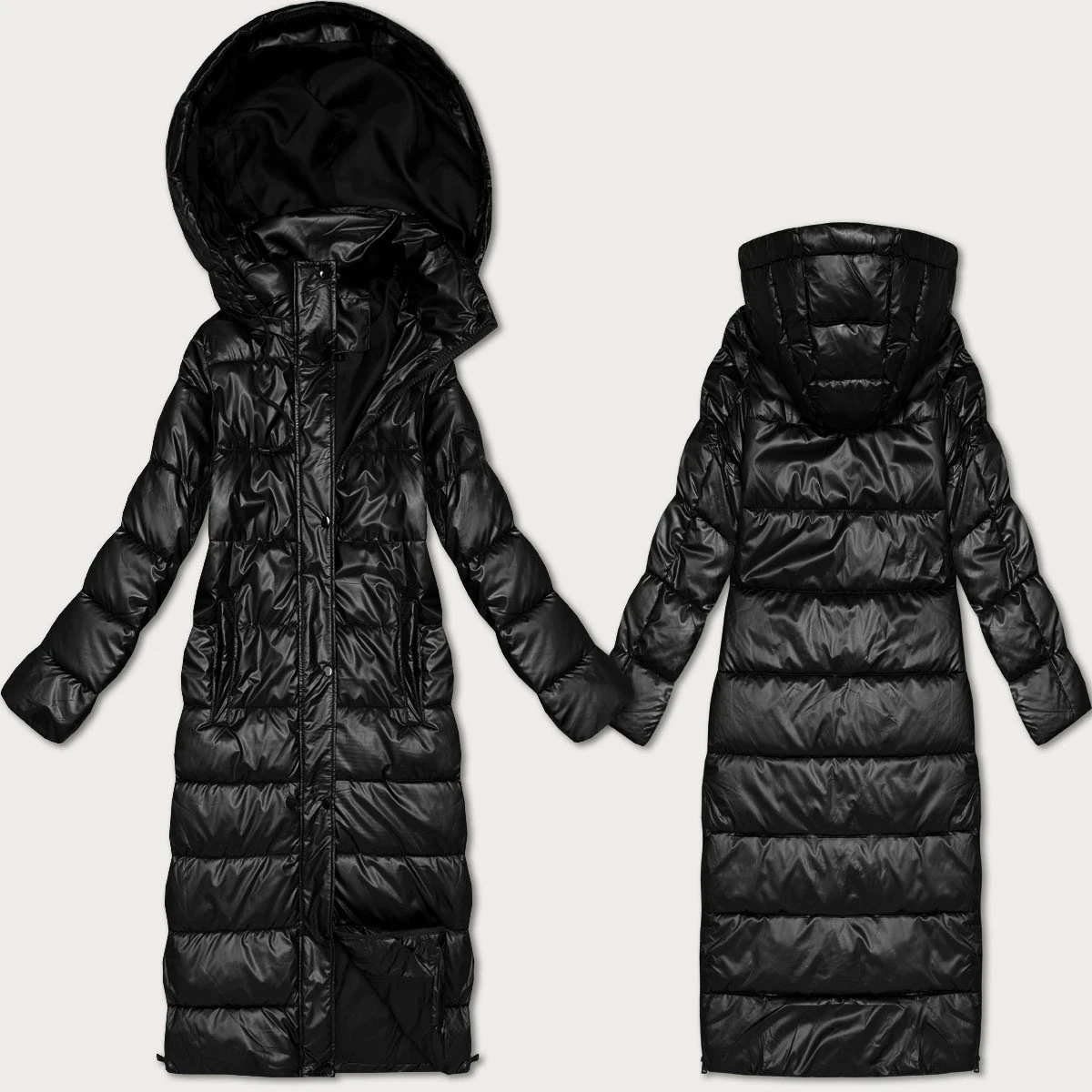 Černá dlouhá prošívaná bunda pro přechodné období s kapucí (T3-2629#-1)