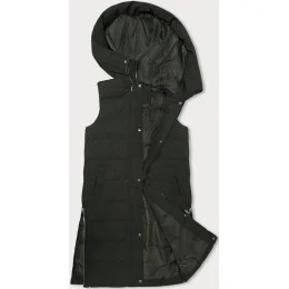 Dlouhá dámská péřová vesta v army barvě (5M3157-136)