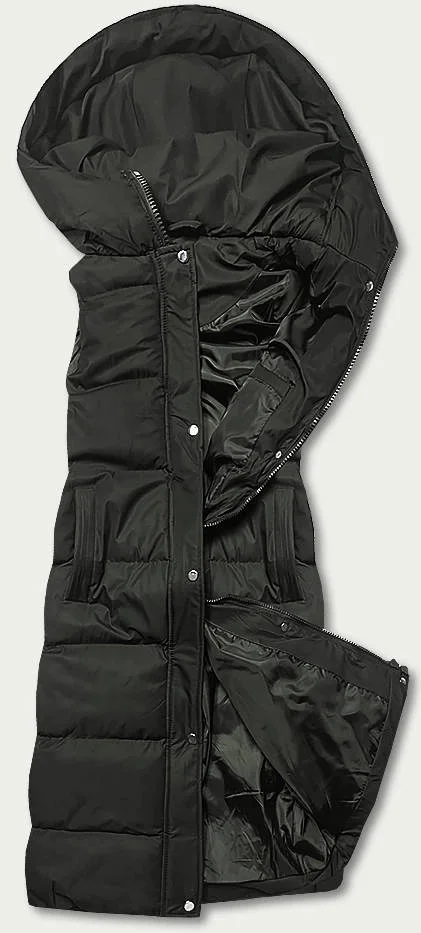 Dlouhá dámská péřová vesta v army barvě (5M728-136)