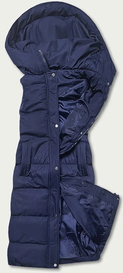 Tmavě modrá dlouhá dámská péřová vesta (5M728-215)