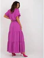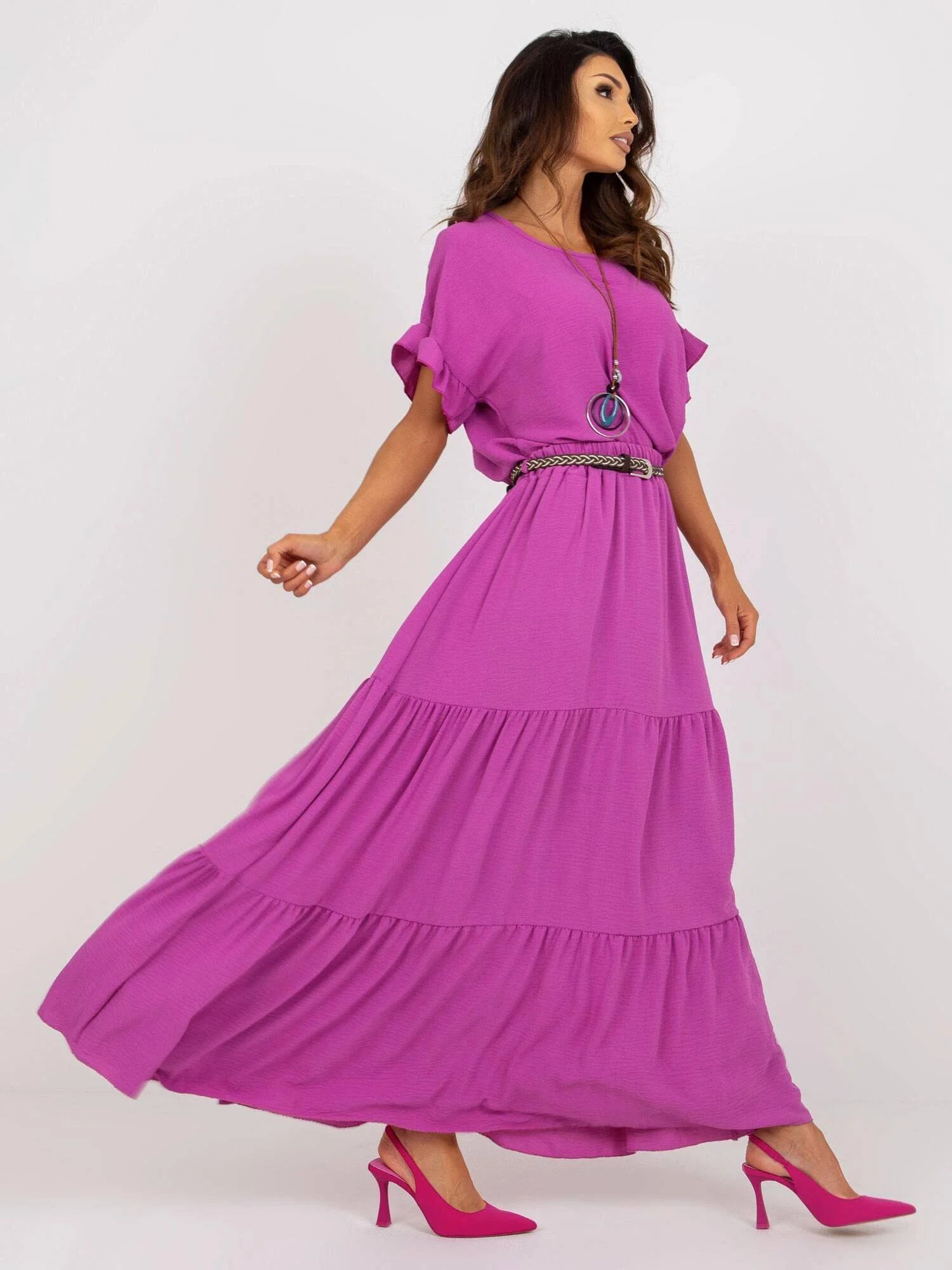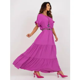 Fialové dlouhé dámské šaty s volánkem (8367)