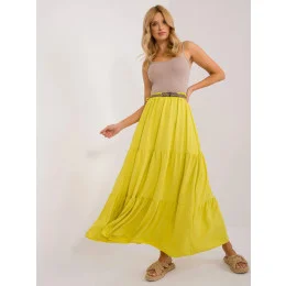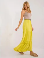 Šaty mají v pase gumu a opasek. Model má délku maxi.