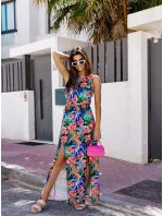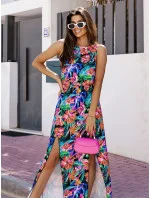 Dlouhé multibarevné dámské šaty s gumou v pase (8183)