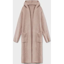 Dlouhý béžový vlněný přehoz přes oblečení typu alpaka s kapucí (M105-1)