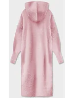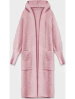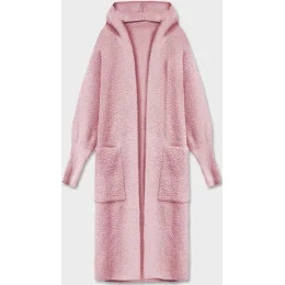 Bledě růžový dlouhý vlněný přehoz přes oblečení typu alpaka s kapucí (M105)