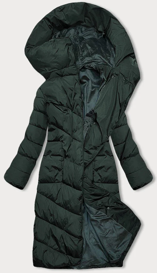 Tmavě zelená dlouhá dámská zimní bunda (2M-033)