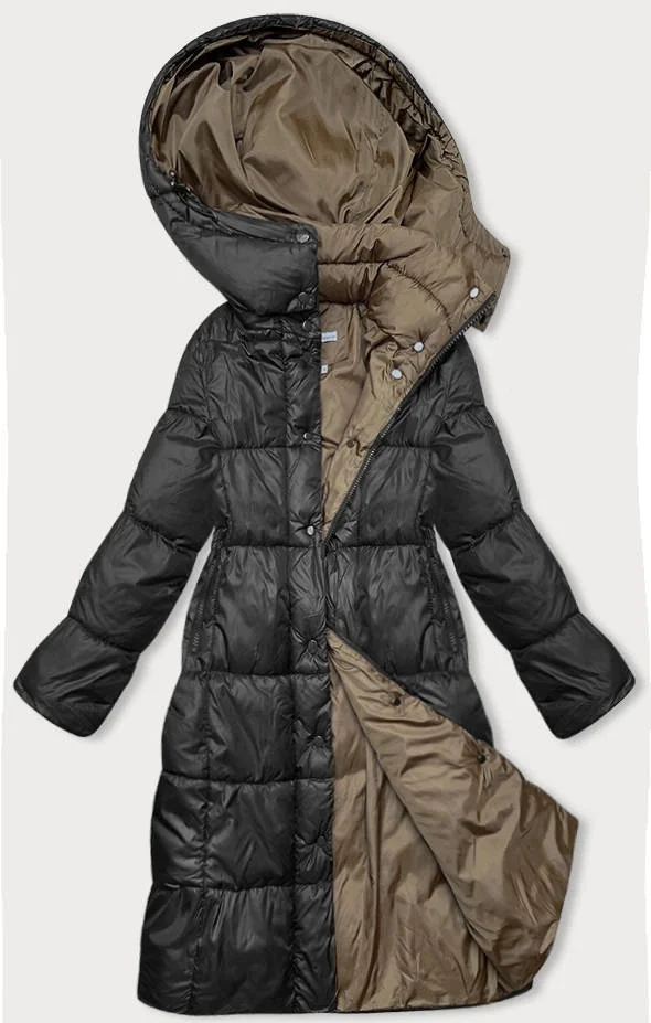 Dlouhá černá dámská zimní bunda (YP-22073-1)