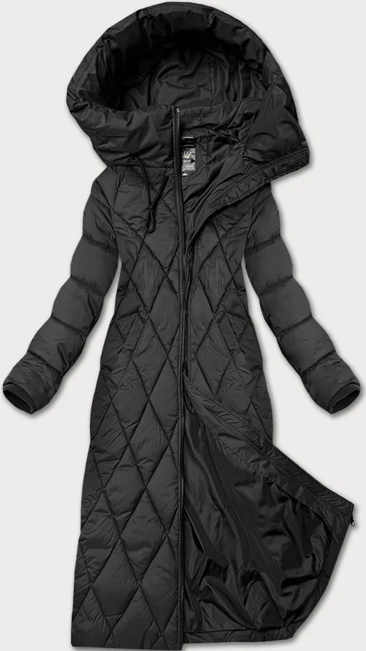 Černá dlouhá dámská zimní bunda s kapucí Libland (7832)