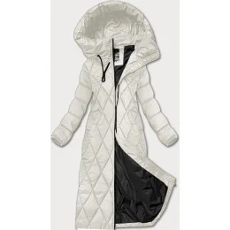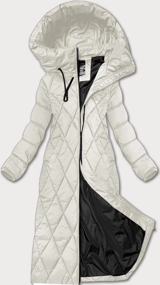 Dlouhá dámská zimní bunda v barvě ecru s kapucí Libland (7832)