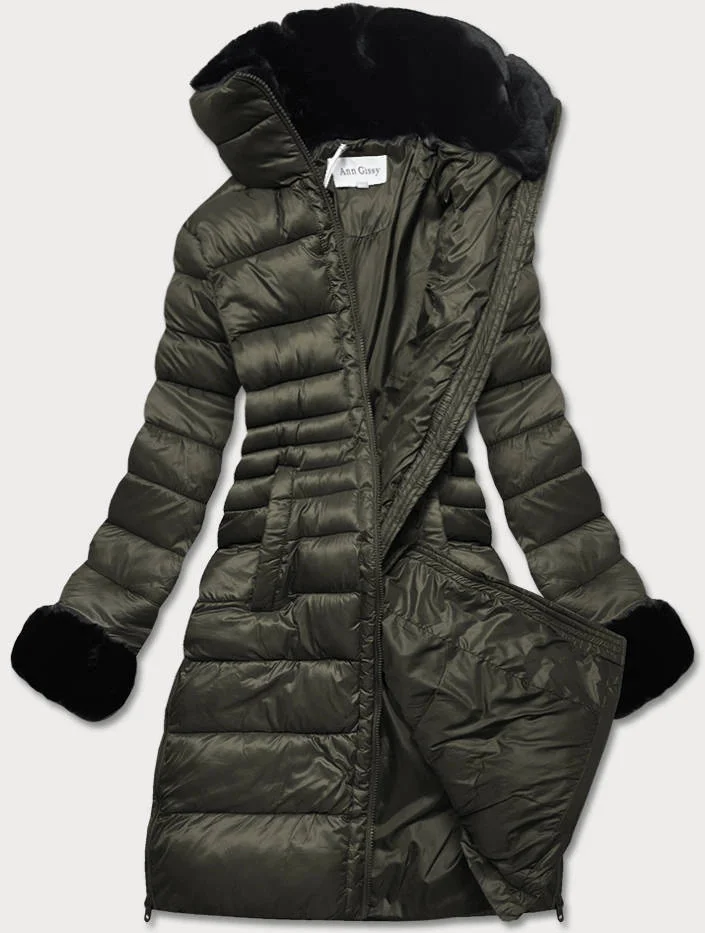 Delší dámská prošívaná zimní bunda v khaki barvě (j19-017)