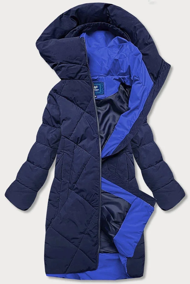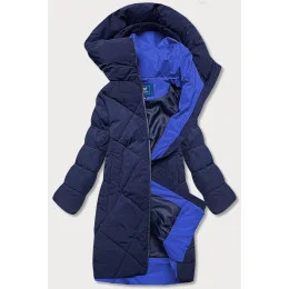 Tmavě modrá delší dámská zimní bunda s vysokým stojáčkem (j9-067)