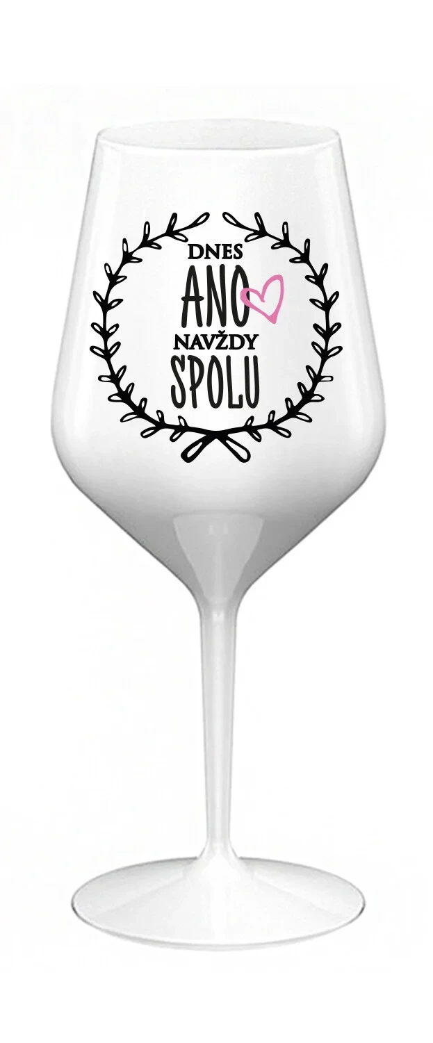 DNES ANO, NAVŽDY SPOLU - bílá nerozbitná sklenice na víno 470 ml