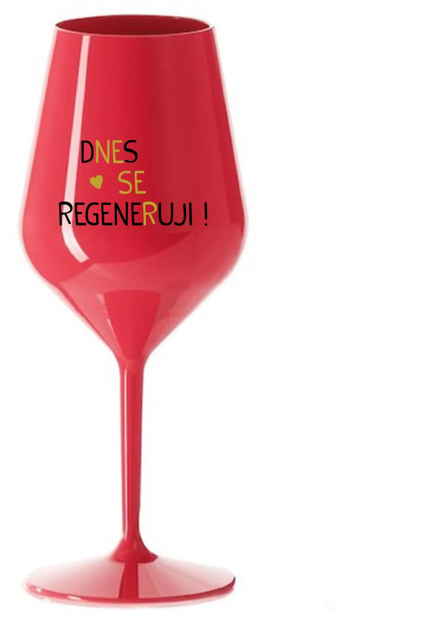 DNES SE REGENERUJI! - červená nerozbitná sklenice na víno 470 ml