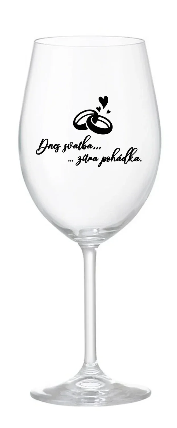 DNES SVATBA, ZÍTRA POHÁDKA - čirá sklenice na víno 350 ml