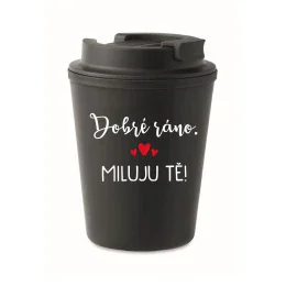 DOBRÉ RÁNO. MILUJU TĚ! - černý termohrnek 300 ml