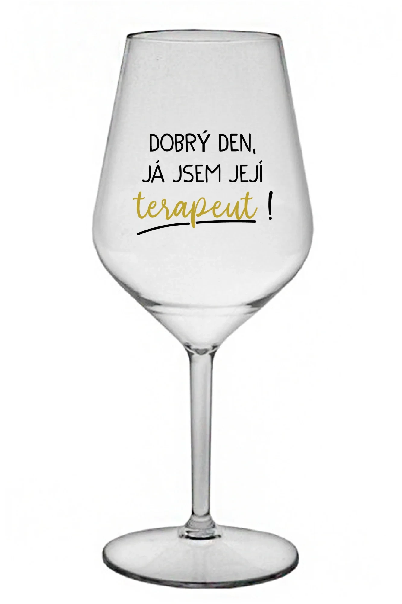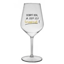 DOBRÝ DEN, JÁ JSEM JEJÍ TERAPEUT! - čirá nerozbitná sklenice na víno 470 ml