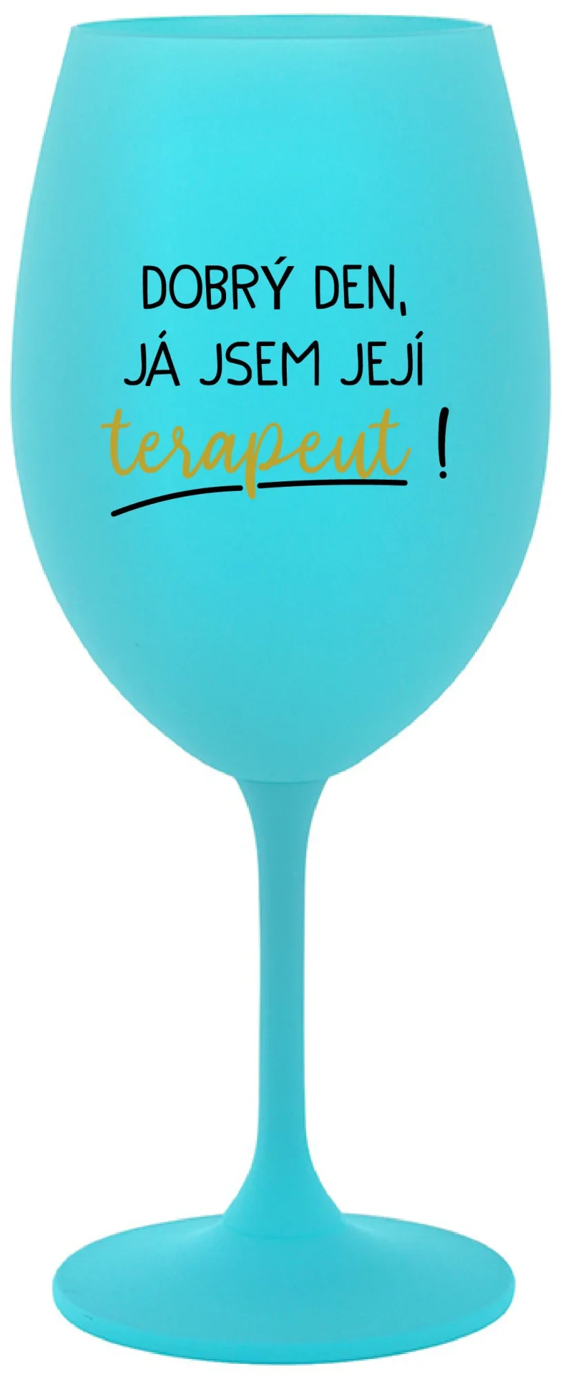 DOBRÝ DEN, JÁ JSEM JEJÍ TERAPEUT! - tyrkysová sklenice na víno 350 ml