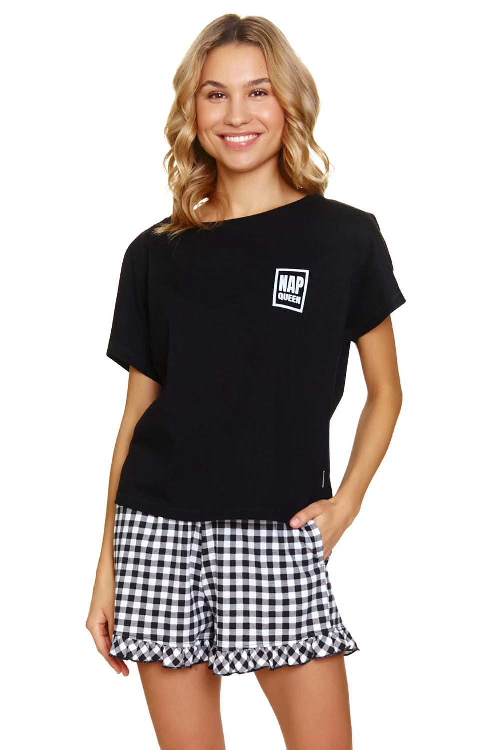 Noční košile značky Doctor Nap. model PM.7213. výrobek je vyroben ze 100% bavlny. má kapsy. délka: krátká. délka rukávu: krátký. typ výstřihu: kulatý. dámský výrobek.