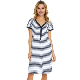 Noční košile značky Doctor Nap. model TCB.5232. výrobek je vyroben ze 100% bavlny. těhotenské oblečení. místo zapínání: vpředu. má kapsy. zapínání noční košile na patentky. délka rukávů: krátké. délka: midi. dámský výrobek.