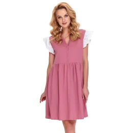 Noční košile značky Doctor Nap. model TCB.9903. výrobek je vyroben ze 100% bavlny. těhotenské oblečení. místo zapínání: vpředu. má kapsy. zapínání noční košile na patentky. délka rukávů: krátké. délka: midi. dámský výrobek. typ výstřihu: do V.
