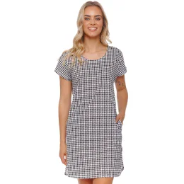 Noční košile značky Doctor Nap. model TM.4554. tento výrobek je vyroben ze 100% bavlny. má kapsy. délka rukávu: krátký. délka: krátká. dámský výrobek. typ výstřihu: kulatý.