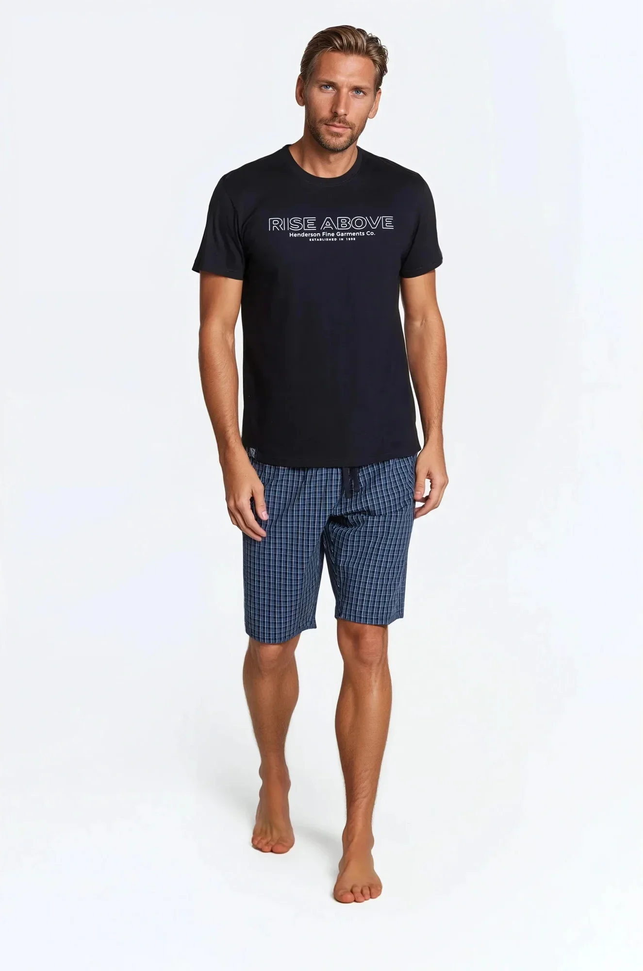 Skvělé pánské pyžamo v atraktivním barevném provedení. Sportovní, pohodlná verze v kombinaci s kalhotami pod kolena v módním kostkovaném vzoru. Černé tričko s potiskem uprostřed vám umožní vypadat skvěle a zároveň plně pohodlně, zatímco kalhoty se zajímavým klasickým vzorem poskytují zajímavý akcent. 100% bavlna.