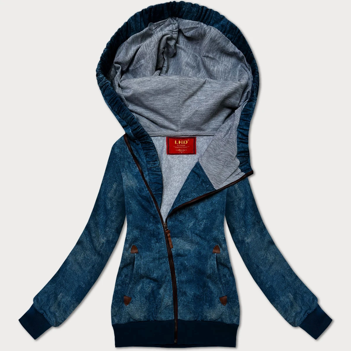Modrá vypasovaná dámská mikina s asymetrickým zipem LHD (AMG-61)