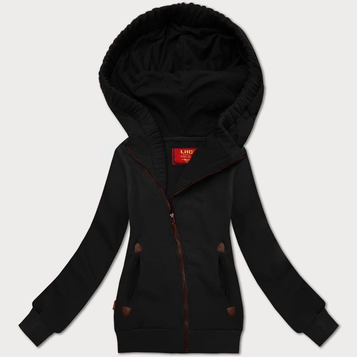 Černá vypasovaná dámská mikina s asymetrickým zipem LHD (AMG-61)
