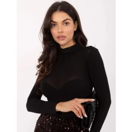 Vypasovaná černá halenka s rolákem a s přídavkem kašmíru (21819)