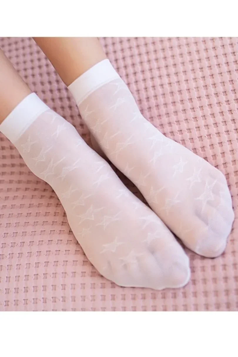 Dívčí vzorované ponožky 20 DEN, vyrobené z pletené příze pro větší odolnost proti vytažení. Zesílené prsty. Celá ponožka pokrytá hvězdičkovým vzorem.