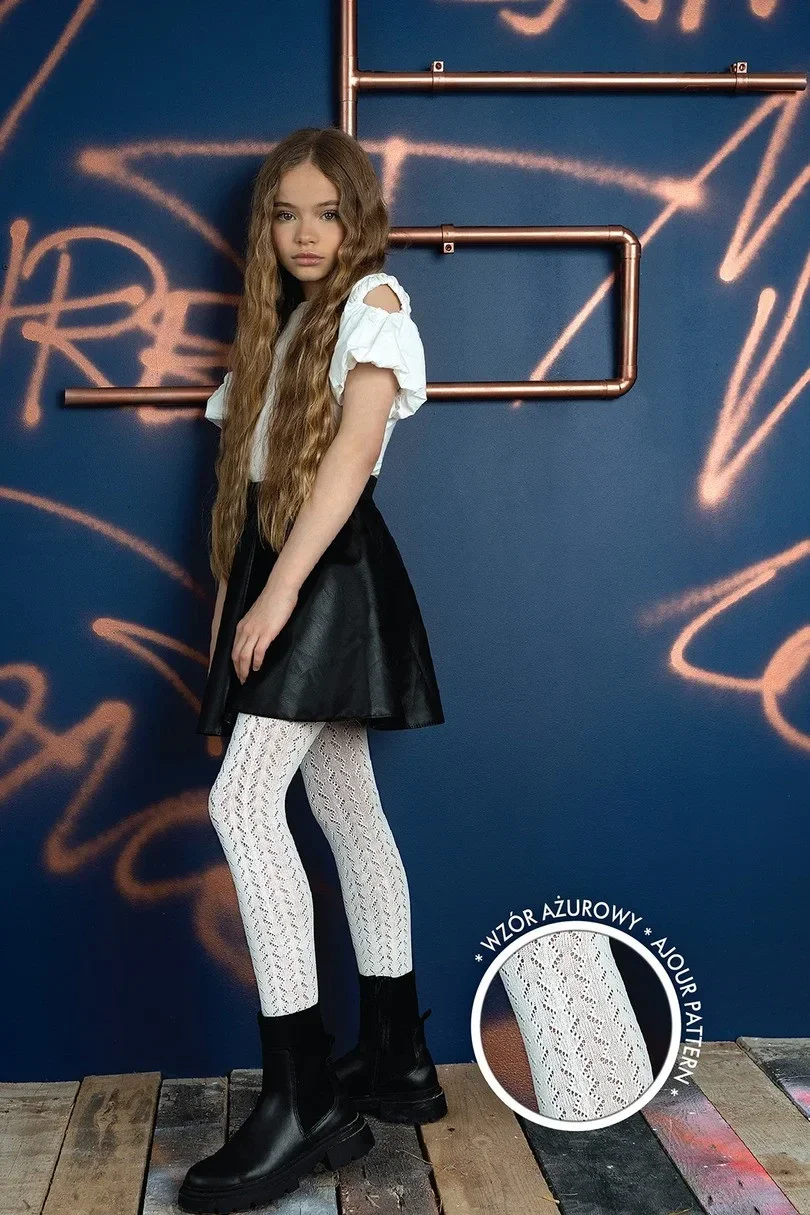 Dívčí punčocháče s prolamovaným vzorem a bavlněným klínem.