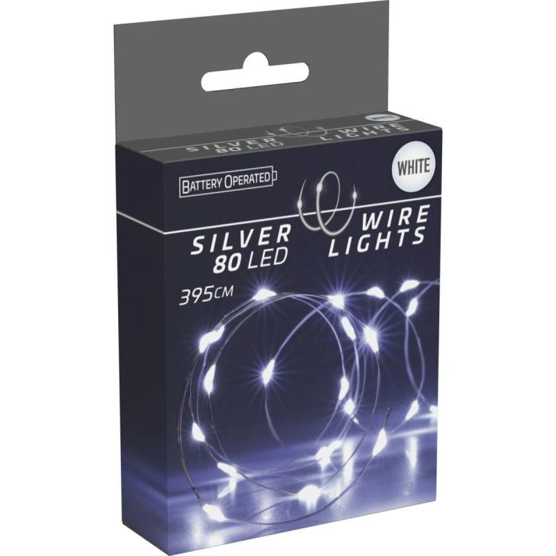 DRÁTĚNÁ SVĚTLA OVLÁDANÁ BATERIEMI GIRLANDA 80 VEDLA STUDENÁ BÍLÁ