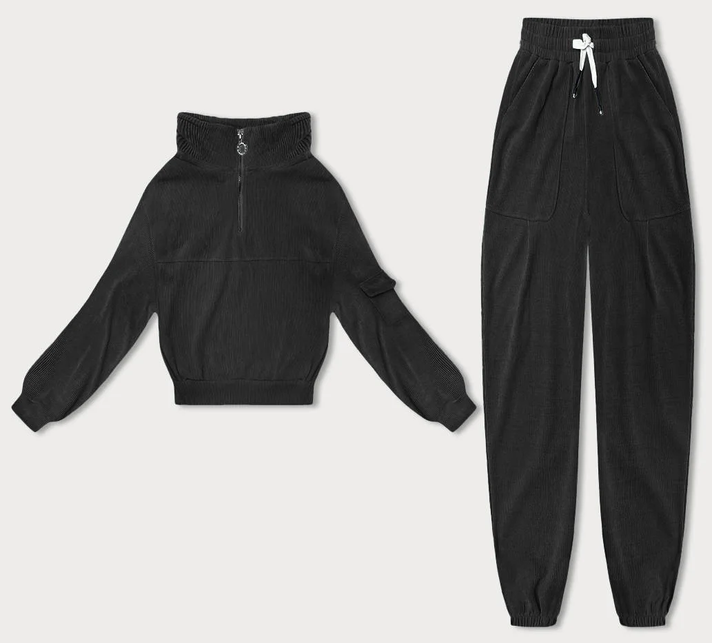 Černý dámský teplákový komplet typu "wafel" (AMG-339A)