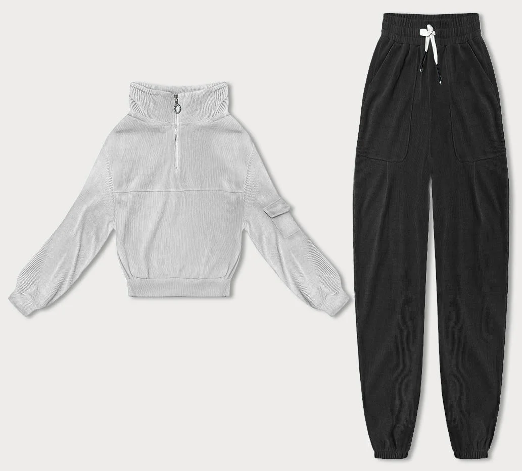 Světle šedý dámský teplákový komplet typu "wafel" (AMG-339A)