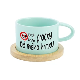 Keramický hrneček s bambusovým podtáckem – Drž své pracky od mého hrnku